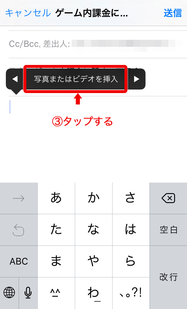 3.「写真またはビデオを挿入」をタップし、添付する写真を選択してください。