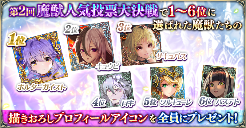 人気順位1~6位に選ばれた魔獣たちの描きおろしプロフィールアイコンの配布を開始致します!