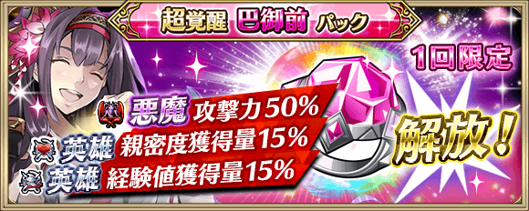 ※「超覚醒巴御前パック」を購入するにはステップ1の「巴御前パック」、ステップ2の「覚醒巴御前パック」を購入、もしくはチケットと交換している必要があります