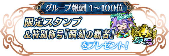 全ワールドのプレイヤーがグループに所属し、グループ内でクリアタイムのスピードを競います。