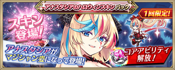 アナスタシアのハロウィンスキンパックを購入すると、英雄「アナスタシア」の見た目がマジシャン姿になり、マジシャンアナスタシアのコアアビリティが解放されます!