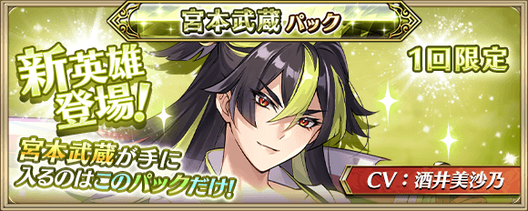 新英雄「宮本武蔵(CV:酒井美沙乃)」が登場!コアアビリティを解放できるパックも登場!