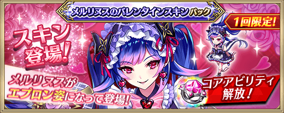 メルリヌスのバレンタインスキンパックを購入すると、英雄「メルリヌス(cv:花澤香菜)」の見た目がエプロン姿になり、コアアビリティが解放されます!