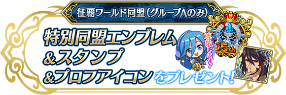 | 征覇戦出場条件は? | 選抜戦で、「各ワールド1位・2位」になった、「同盟のメンバー」となります |